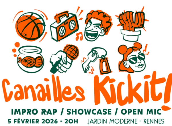 Canailles Kick It! est une soirée d’impro rap réunissant deux équipes d’improvisateur·trice·s membres de la A.I.R Force. Elles s’affrontent lors d’un freestyle entièrement improvisé, à partir d’épreuves inspirées du théâtre d’improvisation, enrichies par les codes du rap : flow, rythme et présence scénique.